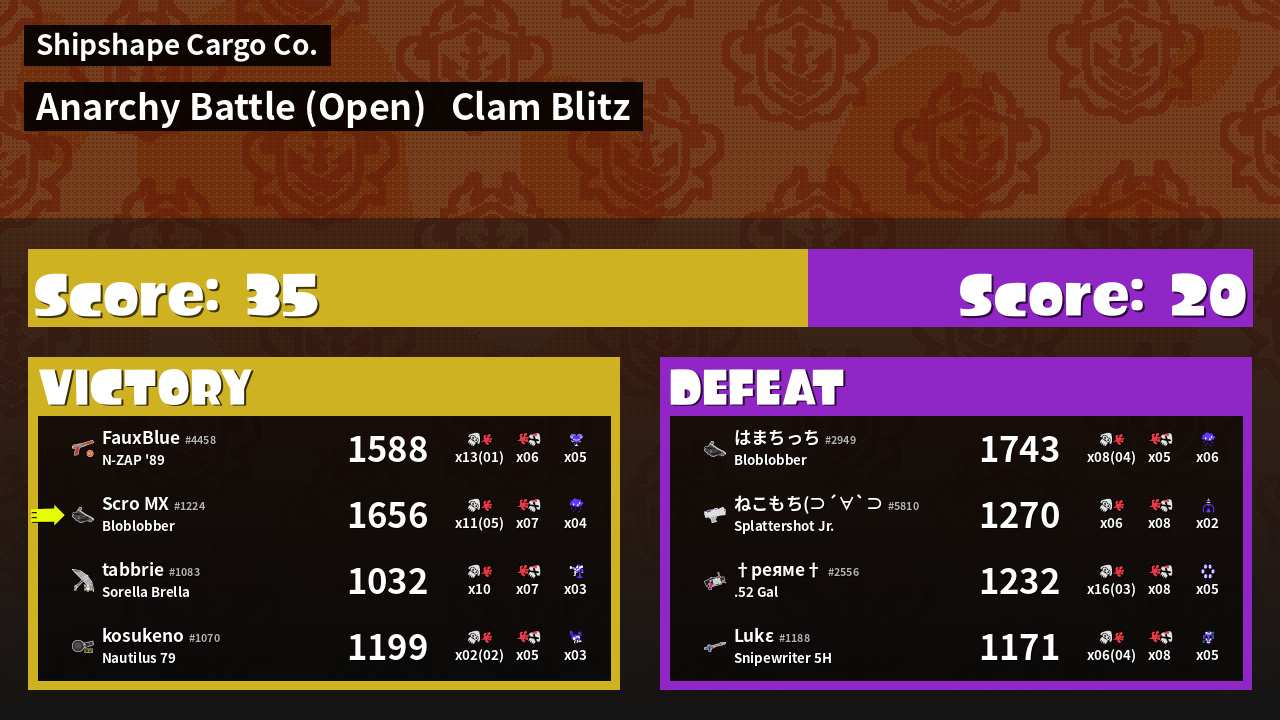 | Mode | Clam Blitz - Anarchy Battle (Open) | ||