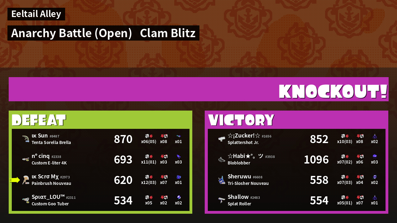 | Mode | Clam Blitz - Anarchy Battle (Open) | ||