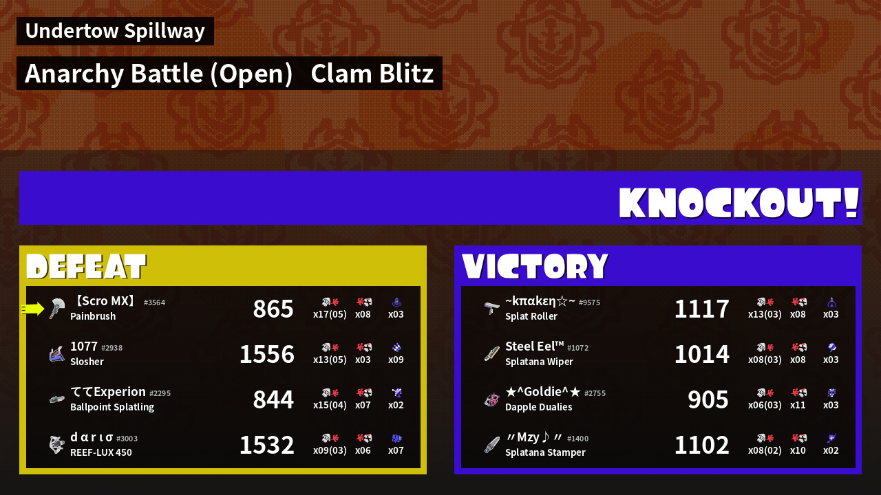 | Mode | Clam Blitz - Anarchy Battle (Open) | ||