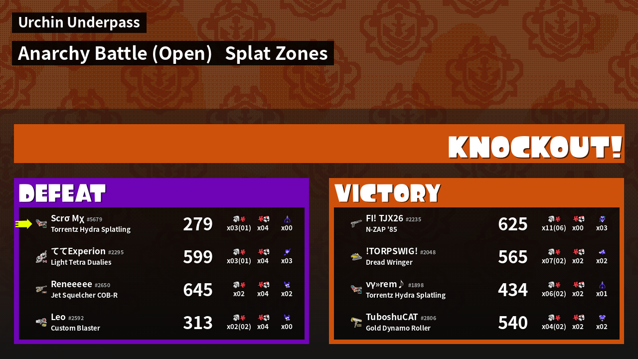 | Mode | Splat Zones - Anarchy Battle (Open) |
