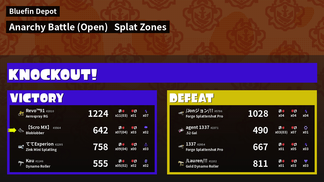 | Mode | Splat Zones - Anarchy Battle (Open) | ||