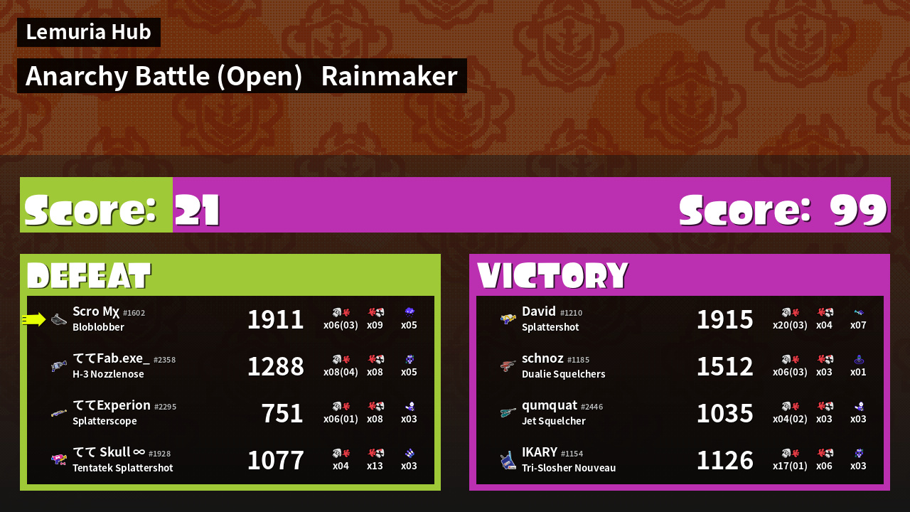 | Mode | Rainmaker - Anarchy Battle (Open) |