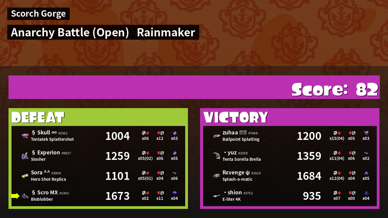 | Mode | Rainmaker - Anarchy Battle (Open) | ||