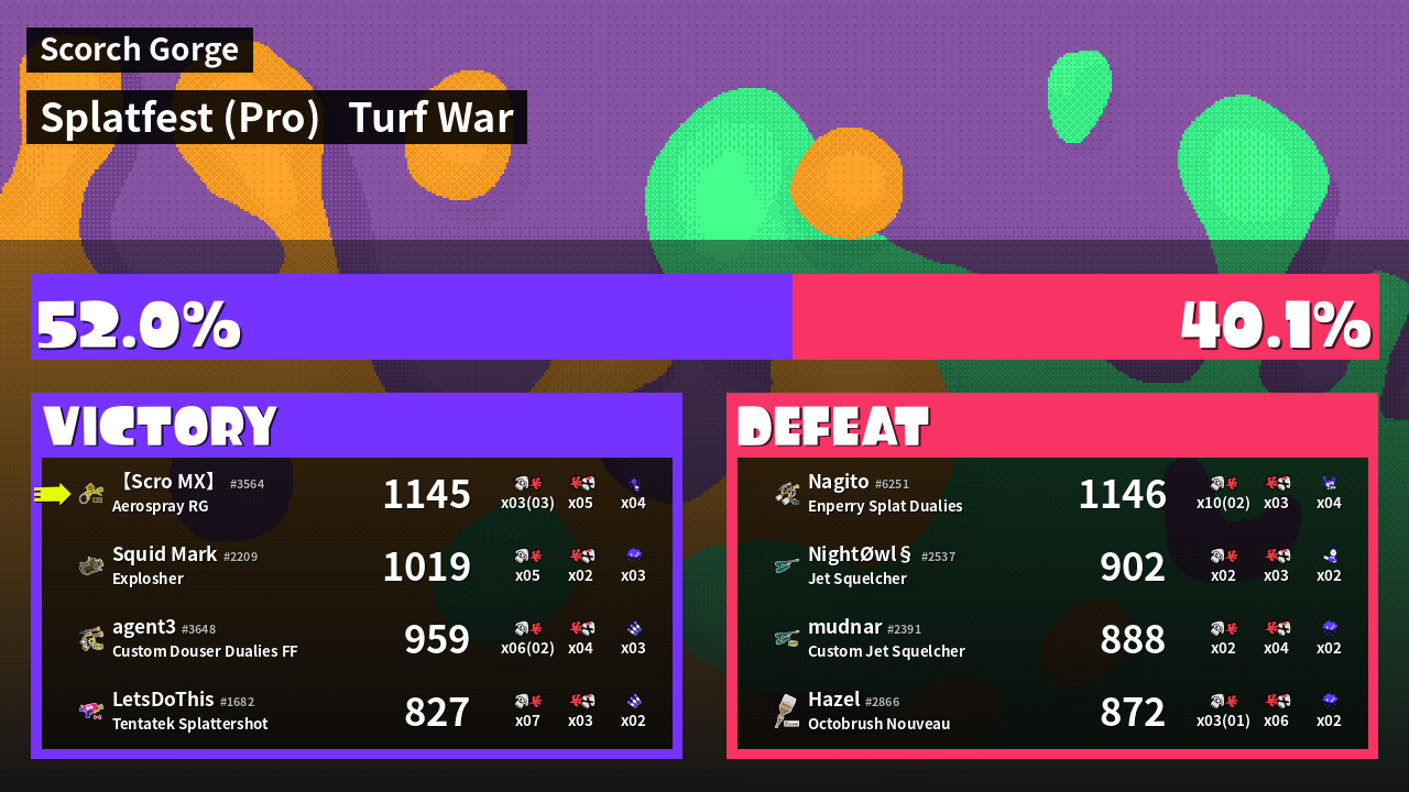 | Mode | Turf War - Splatfest (Pro) | ||