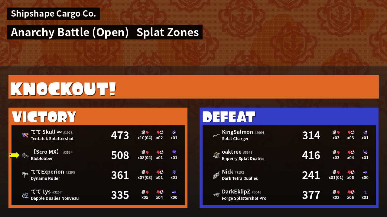 | Mode | Splat Zones - Anarchy Battle (Open) | ||