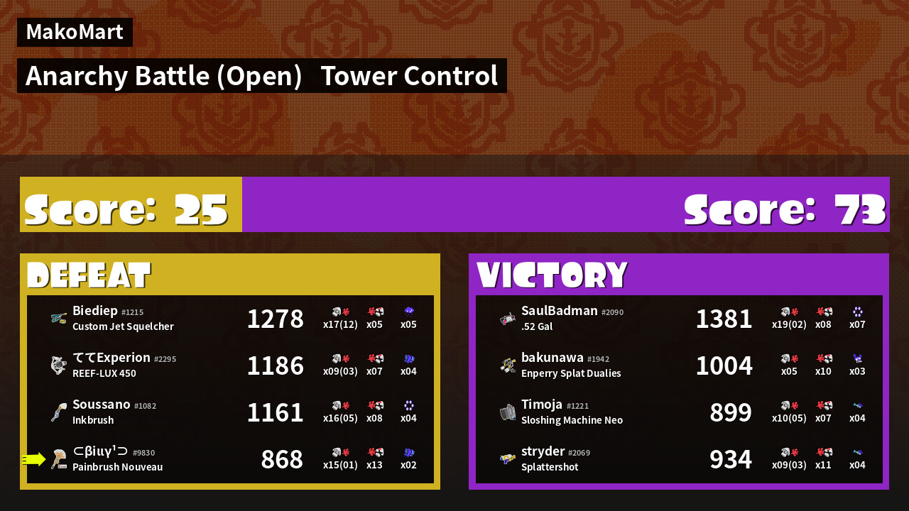 | Mode | Tower Control - Anarchy Battle (Open) | ||