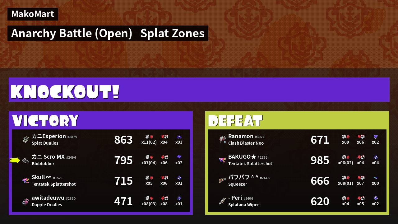 | Mode | Splat Zones - Anarchy Battle (Open) | ||