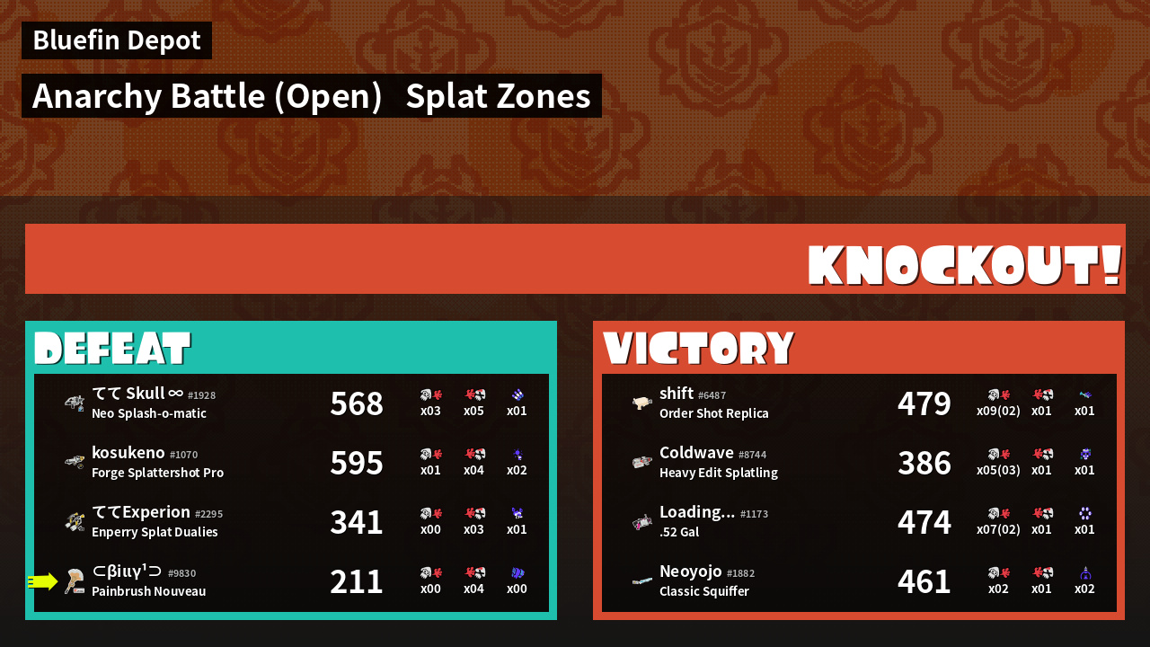 | Mode | Splat Zones - Anarchy Battle (Open) | ||