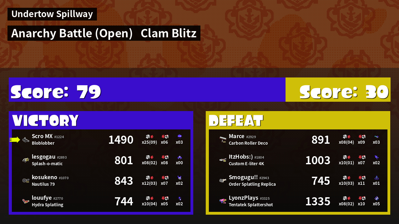 | Mode | Clam Blitz - Anarchy Battle (Open) | ||