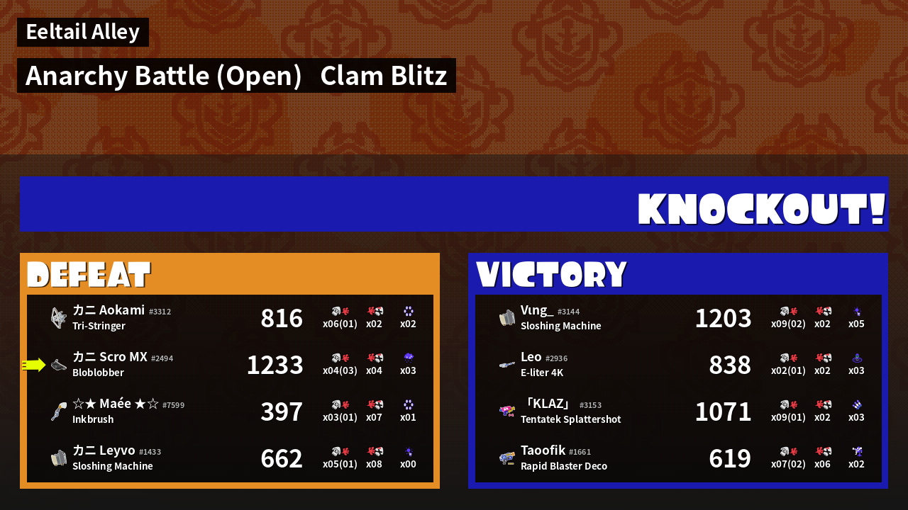 | Mode | Clam Blitz - Anarchy Battle (Open) | ||