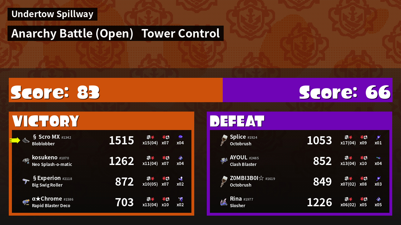 | Medals | #1 Overall Splatter #1 Score Booster #1 Turf Inker | ||