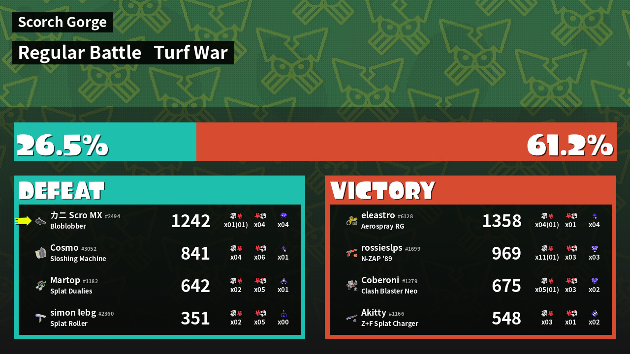 | Mode | Turf War - Regular Battle | ||