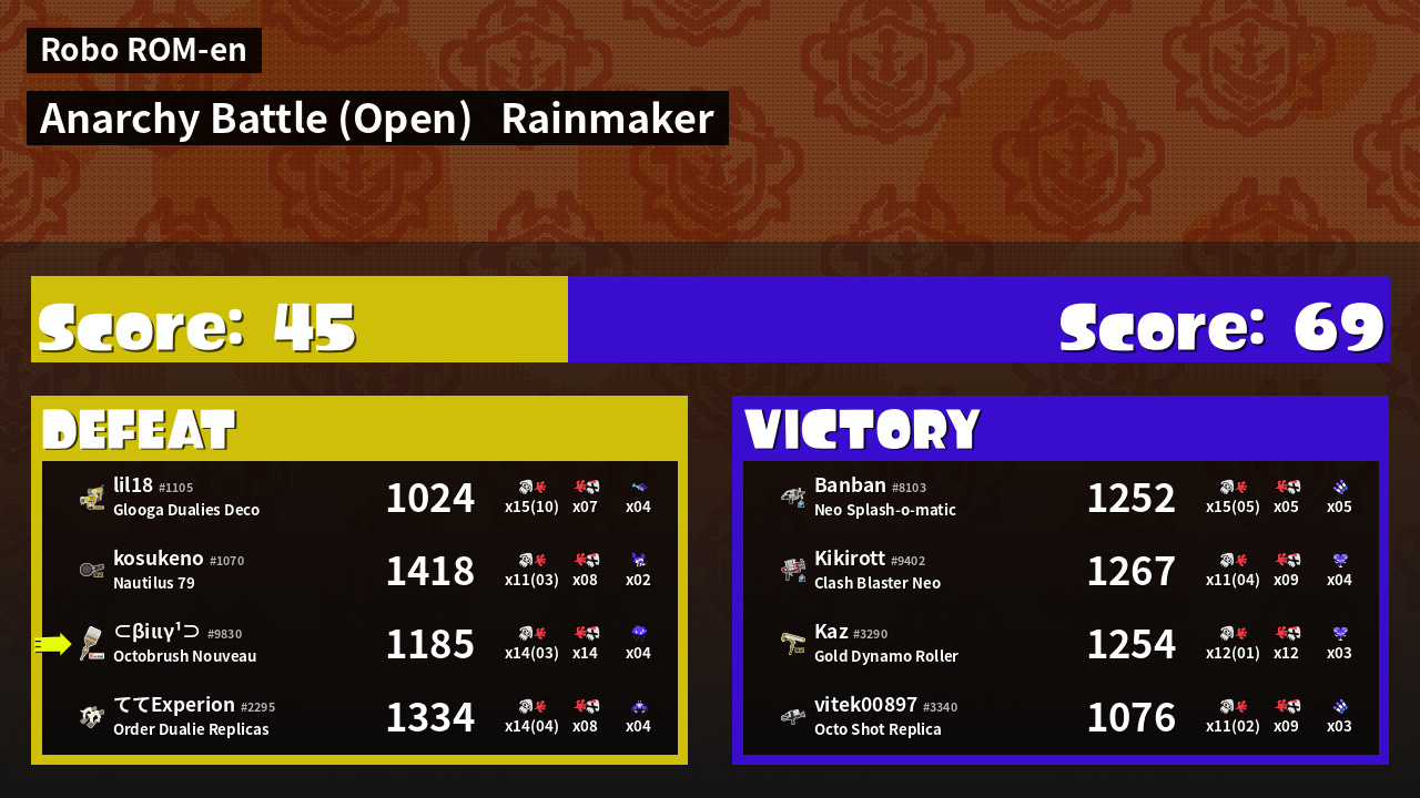 | Mode | Rainmaker - Anarchy Battle (Open) | ||