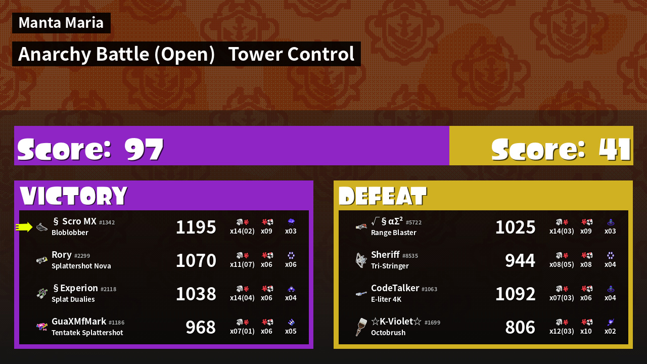 | Mode | Tower Control - Anarchy Battle (Open) | ||
