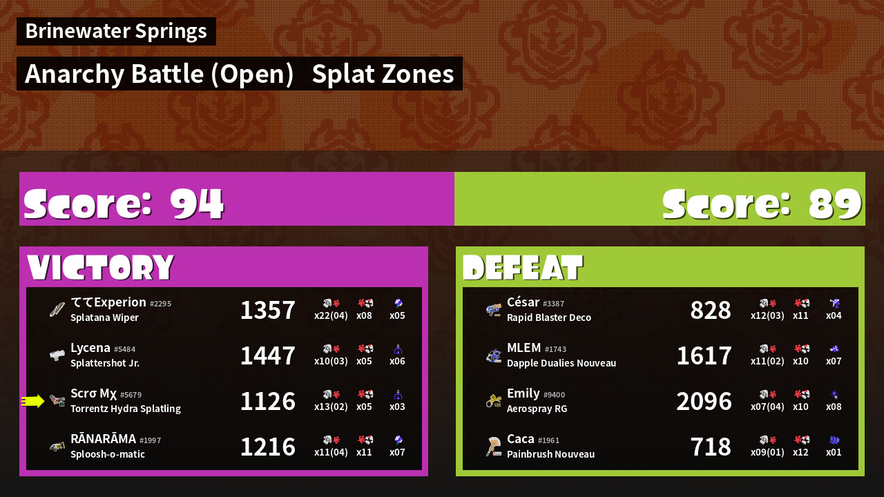 | Mode | Splat Zones - Anarchy Battle (Open) |
