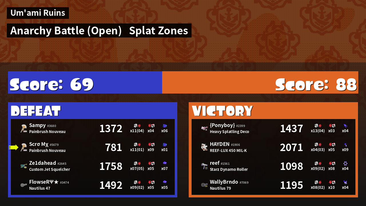 | Mode | Splat Zones - Anarchy Battle (Open) | ||
