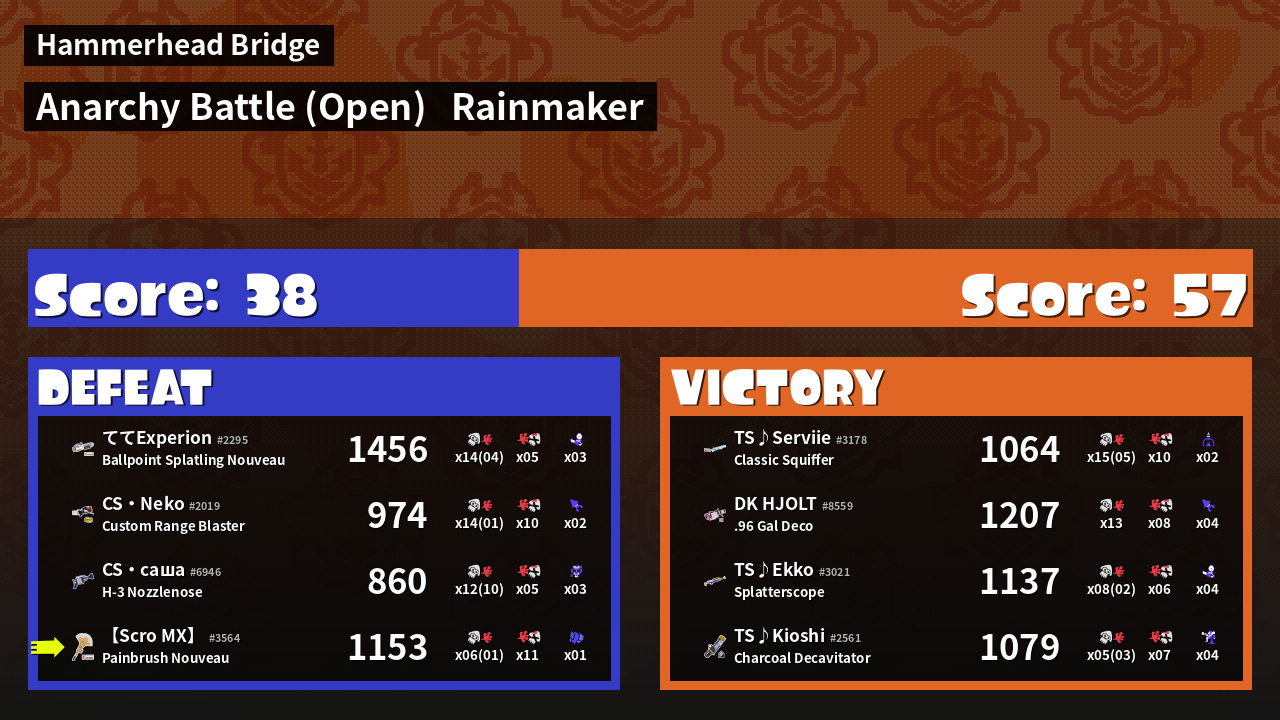 | Mode | Rainmaker - Anarchy Battle (Open) | ||