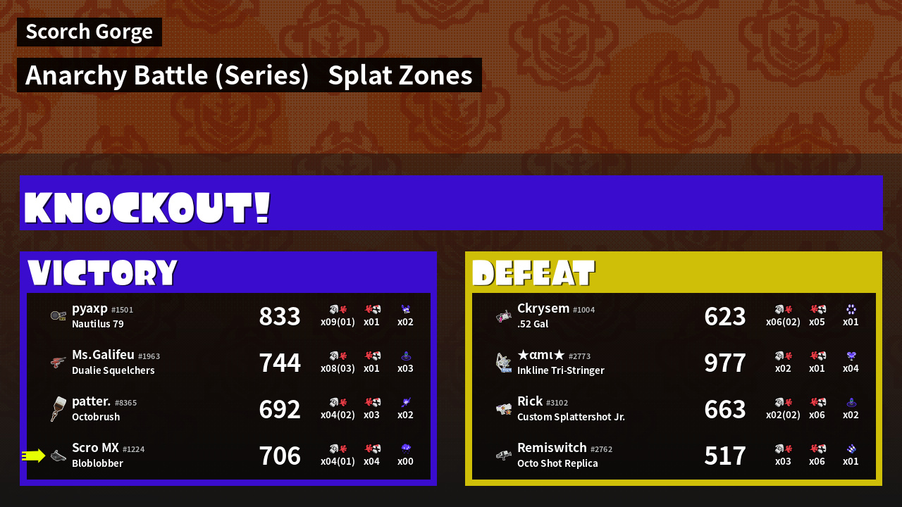 | Medals | #1 Ground Traveler #2 Splat Zone Guard | ||