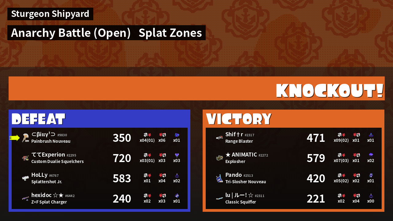 | Mode | Splat Zones - Anarchy Battle (Open) | ||