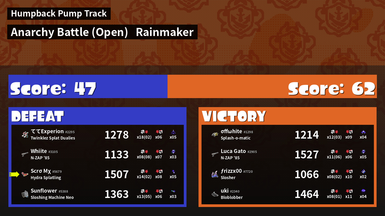 | Mode | Rainmaker - Anarchy Battle (Open) |
