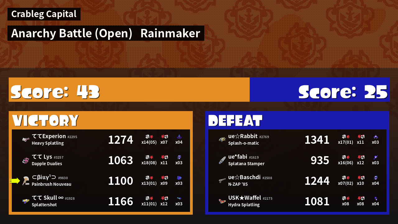 | Mode | Rainmaker - Anarchy Battle (Open) | ||