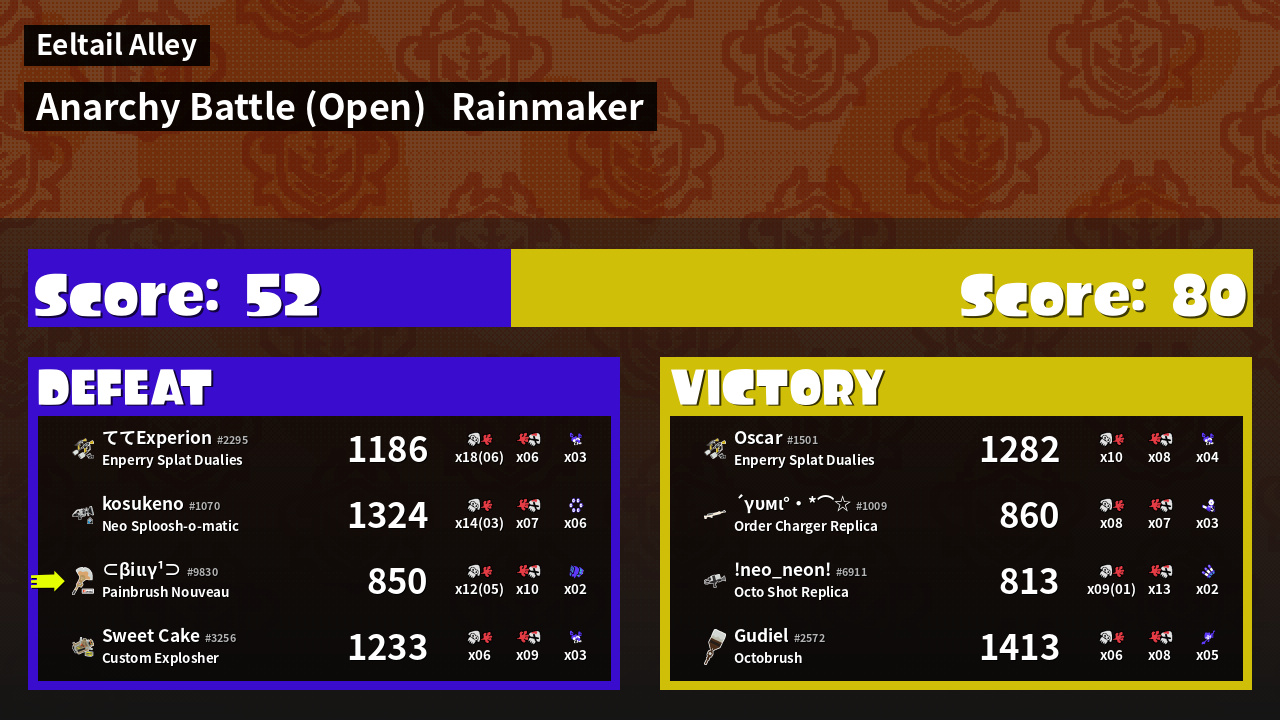 | Mode | Rainmaker - Anarchy Battle (Open) | ||