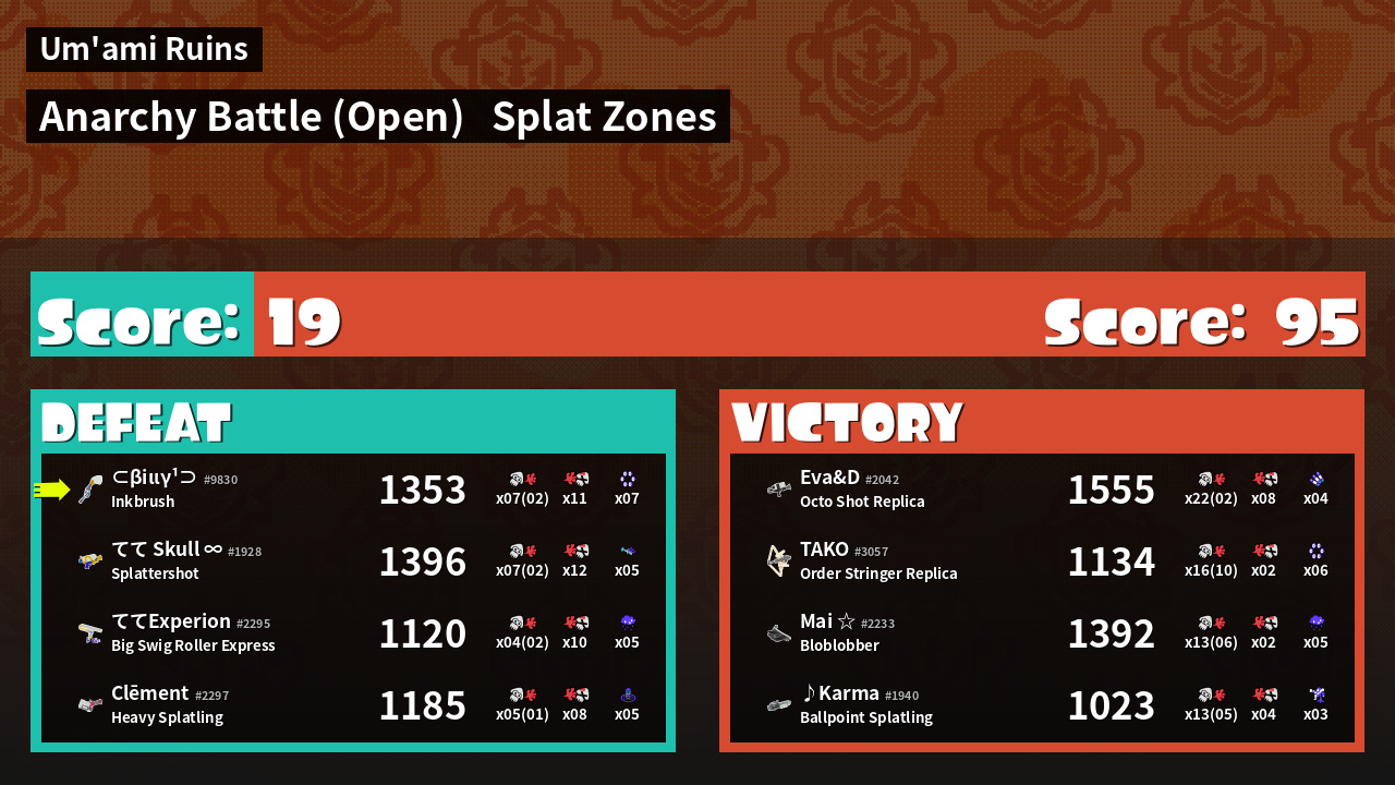 | Mode | Splat Zones - Anarchy Battle (Open) | ||