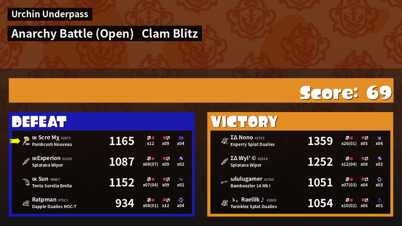 | Mode | Clam Blitz - Anarchy Battle (Open) | ||