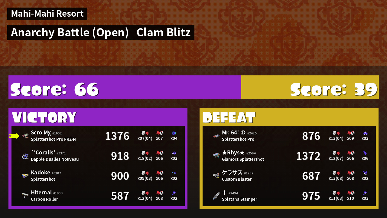 | Mode | Clam Blitz - Anarchy Battle (Open) |
