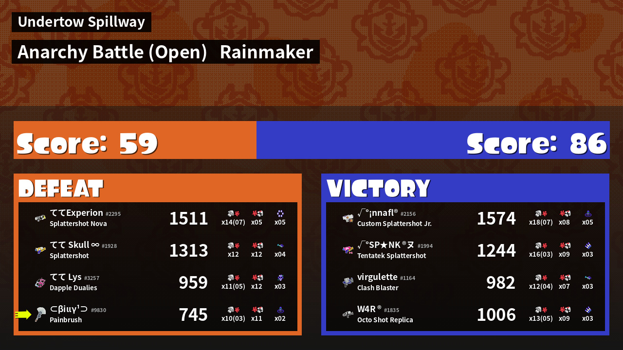 | Mode | Rainmaker - Anarchy Battle (Open) | ||
