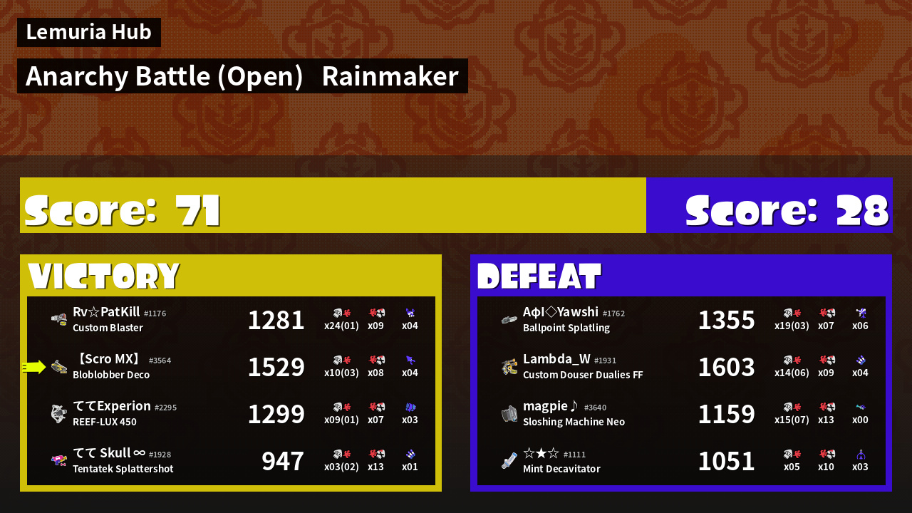 | Mode | Rainmaker - Anarchy Battle (Open) | ||