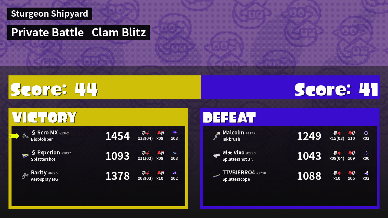 | Mode | Clam Blitz - Private Battle | ||