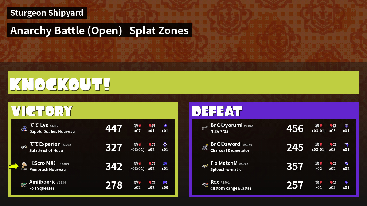 | Mode | Splat Zones - Anarchy Battle (Open) | ||