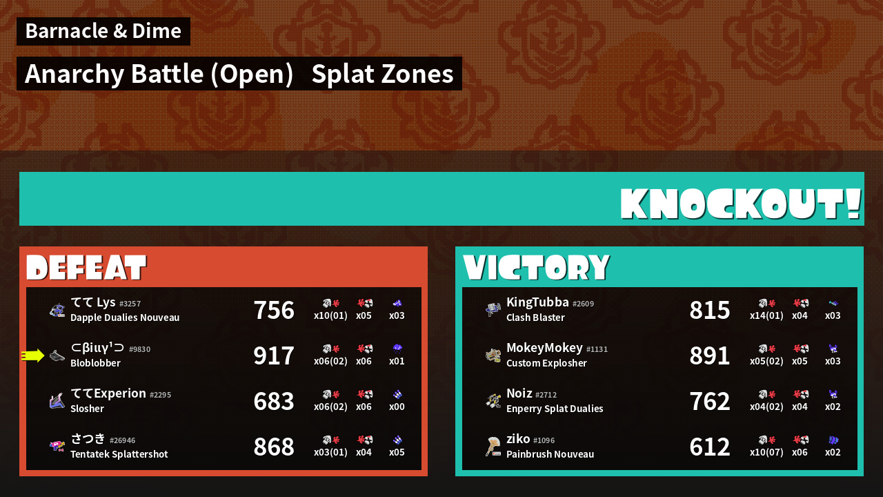 | Mode | Splat Zones - Anarchy Battle (Open) | ||