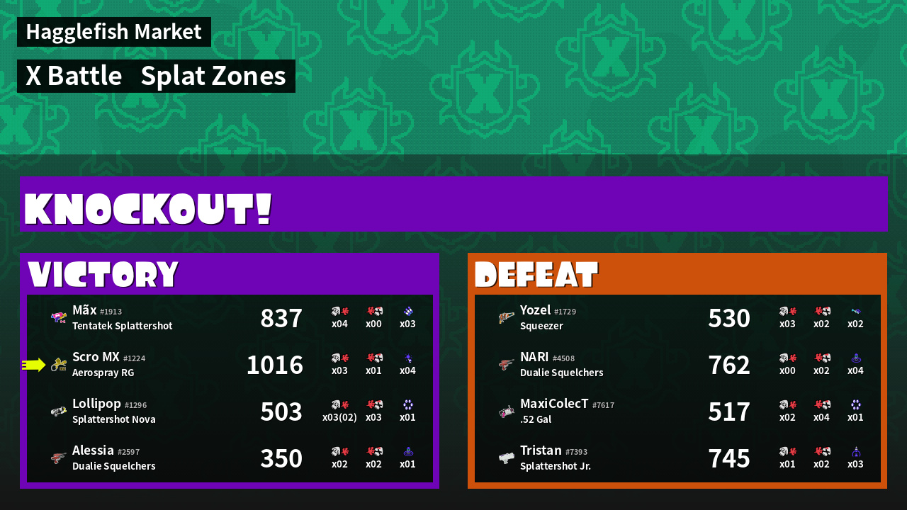 | Mode | Splat Zones - X Battle | ||