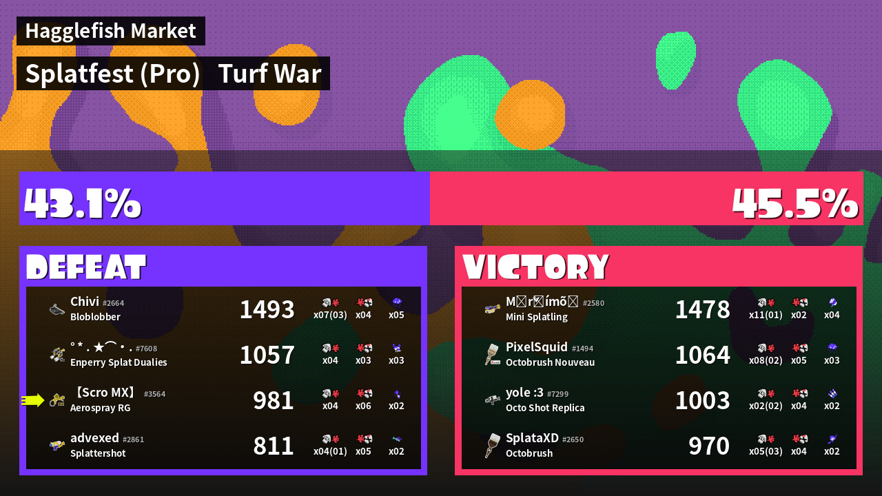 | Medals | #1 Enemy Splatter #1 Ground Traveler #2 Overall Splatter | ||