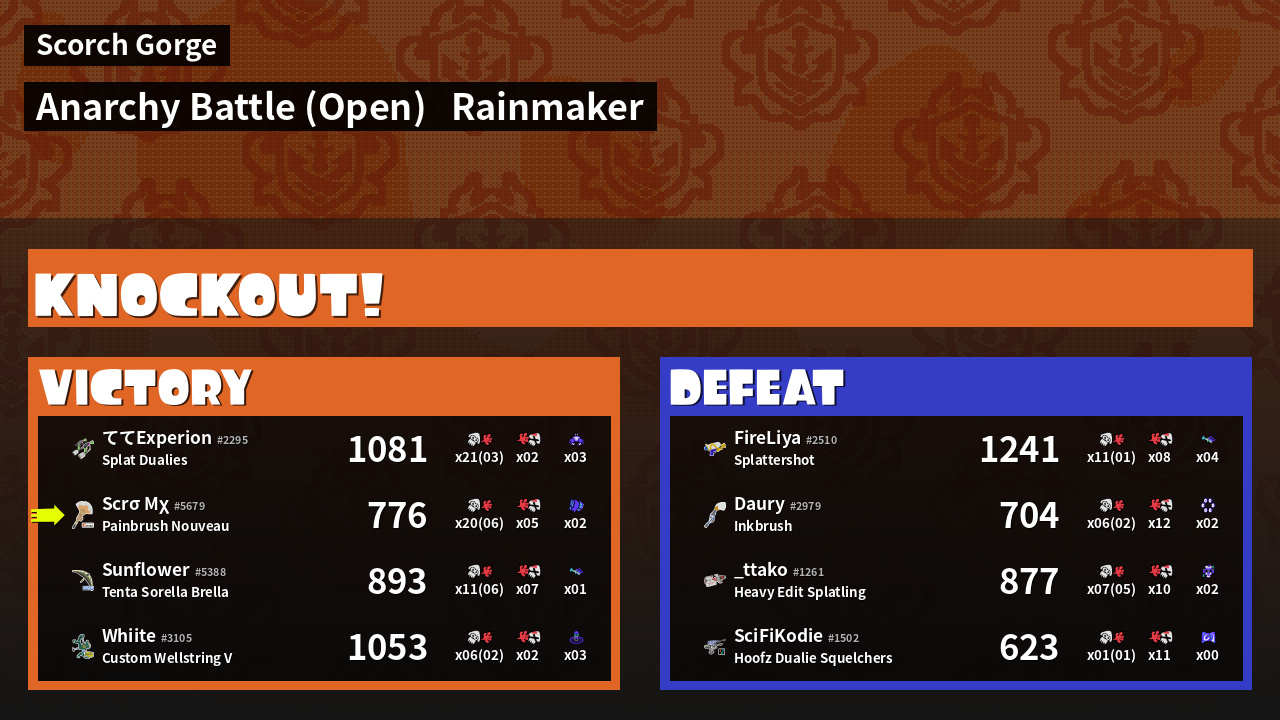 | Medals | #1 Splat Assister #1 Rainmaker Stopper #1 Tenta Missiles User | ||