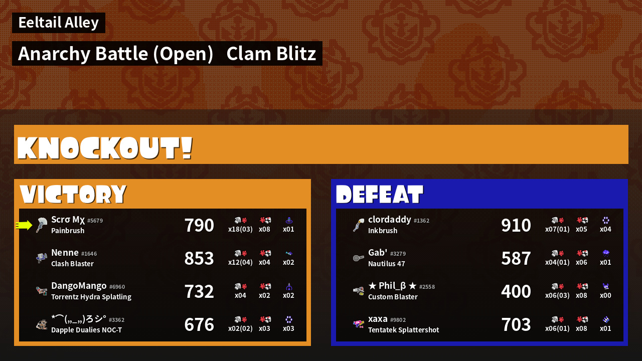 | Mode | Clam Blitz - Anarchy Battle (Open) | ||
