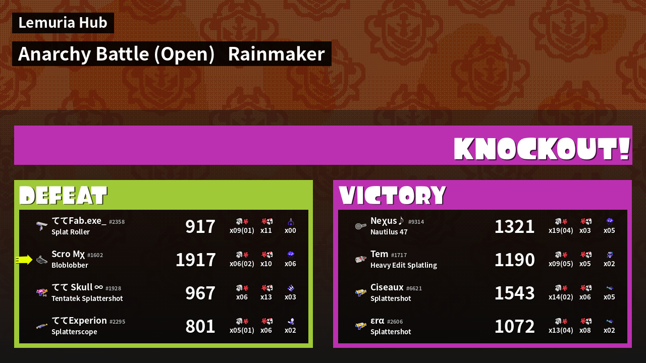 | Mode | Rainmaker - Anarchy Battle (Open) |