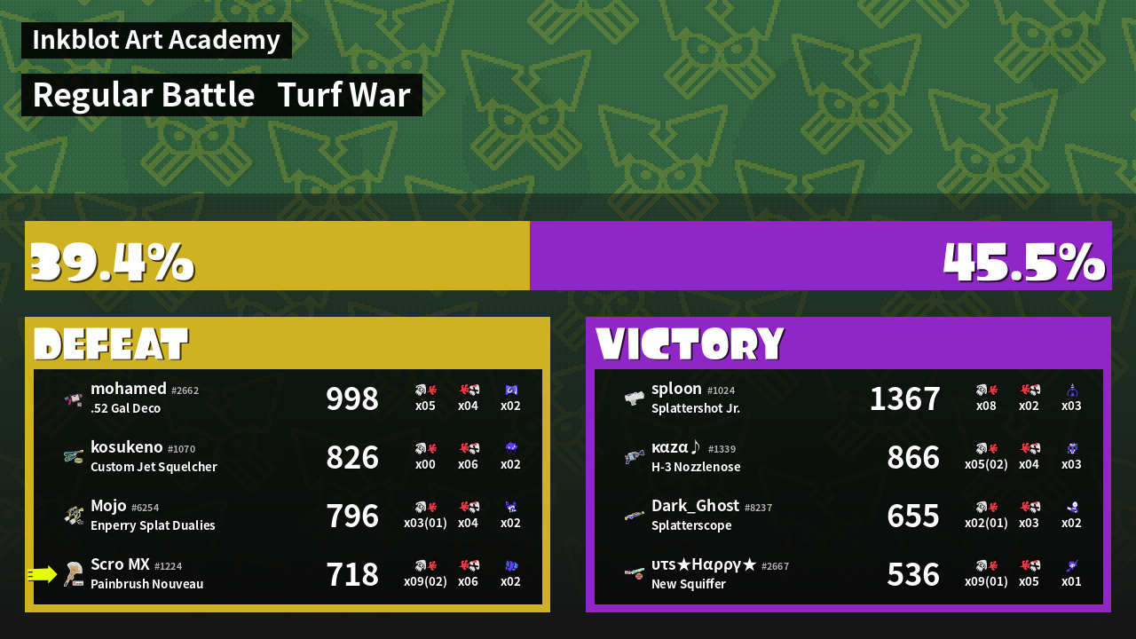 | Mode | Turf War - Regular Battle | ||