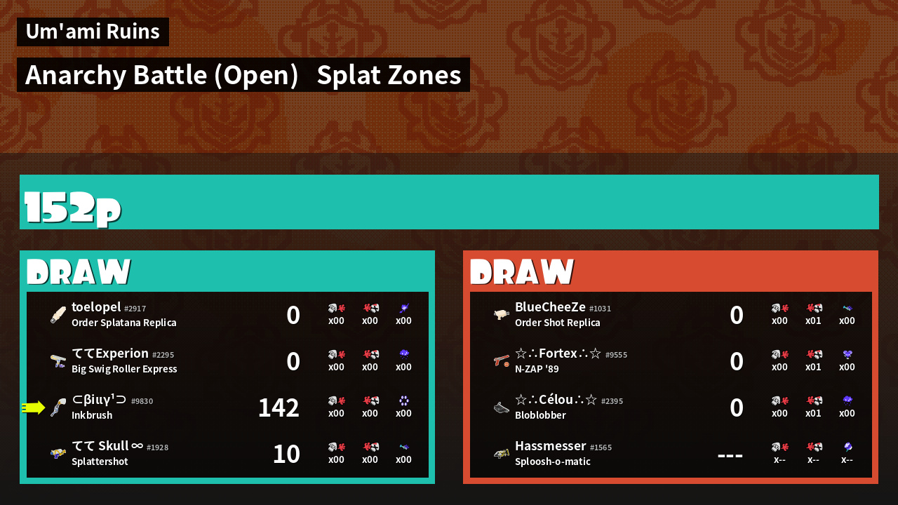 | Mode | Splat Zones - Anarchy Battle (Open) | ||