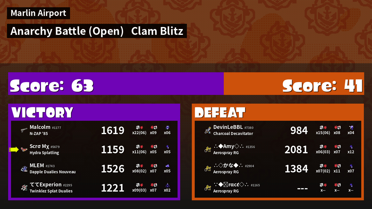 | Mode | Clam Blitz - Anarchy Battle (Open) |