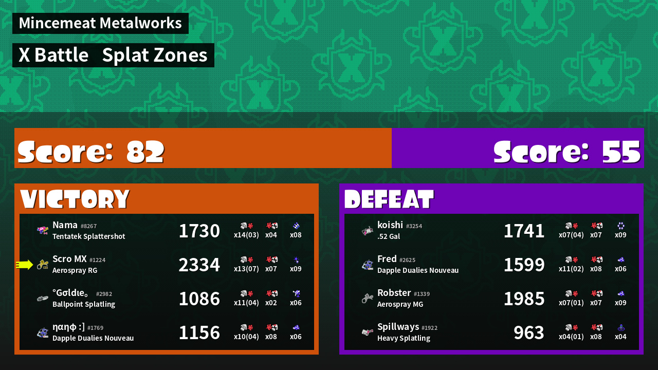 | Medals | #1 Splat Zone Inker #1 Turf Inker #1 Splat Assister | ||