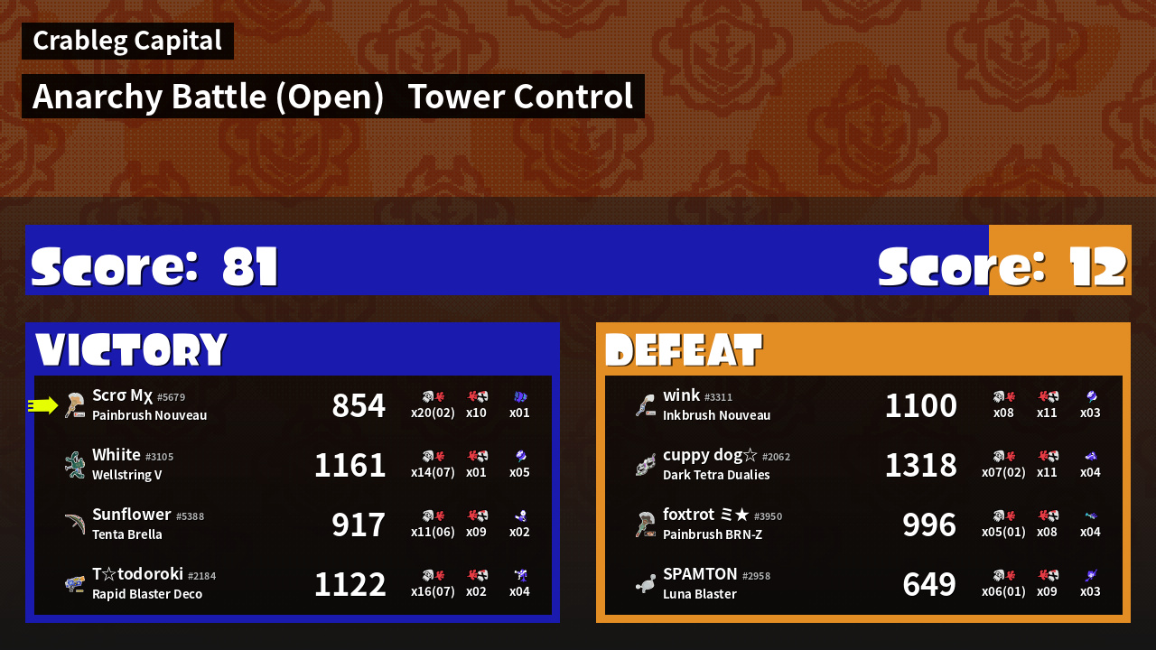 | Mode | Tower Control - Anarchy Battle (Open) | ||