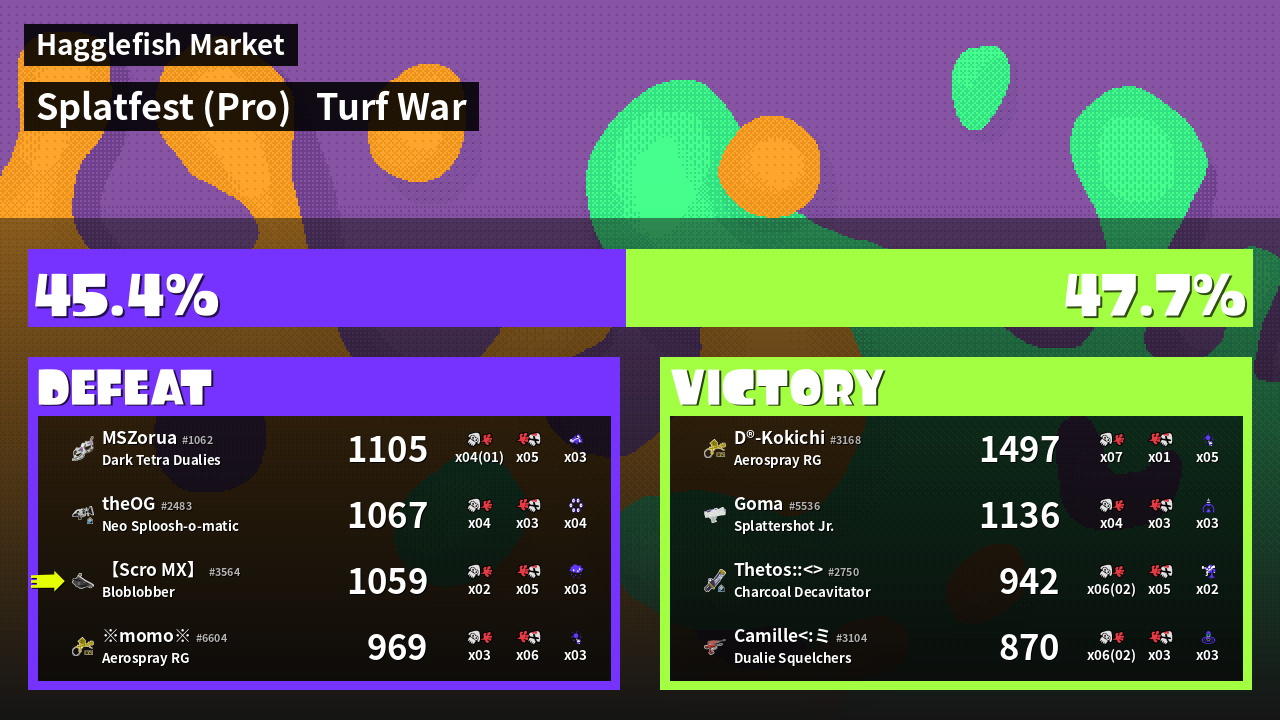 | Mode | Turf War - Splatfest (Pro) | ||