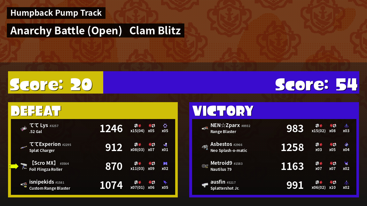 | Mode | Clam Blitz - Anarchy Battle (Open) | ||
