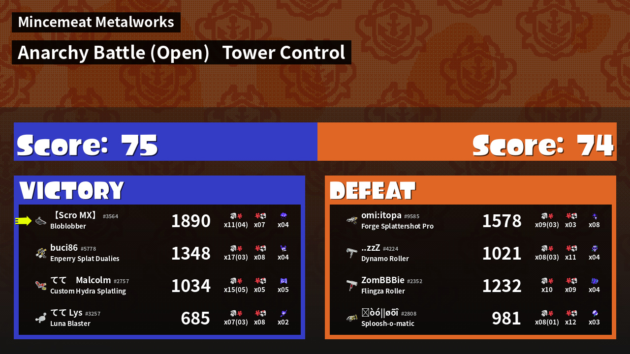 | Mode | Tower Control - Anarchy Battle (Open) | ||