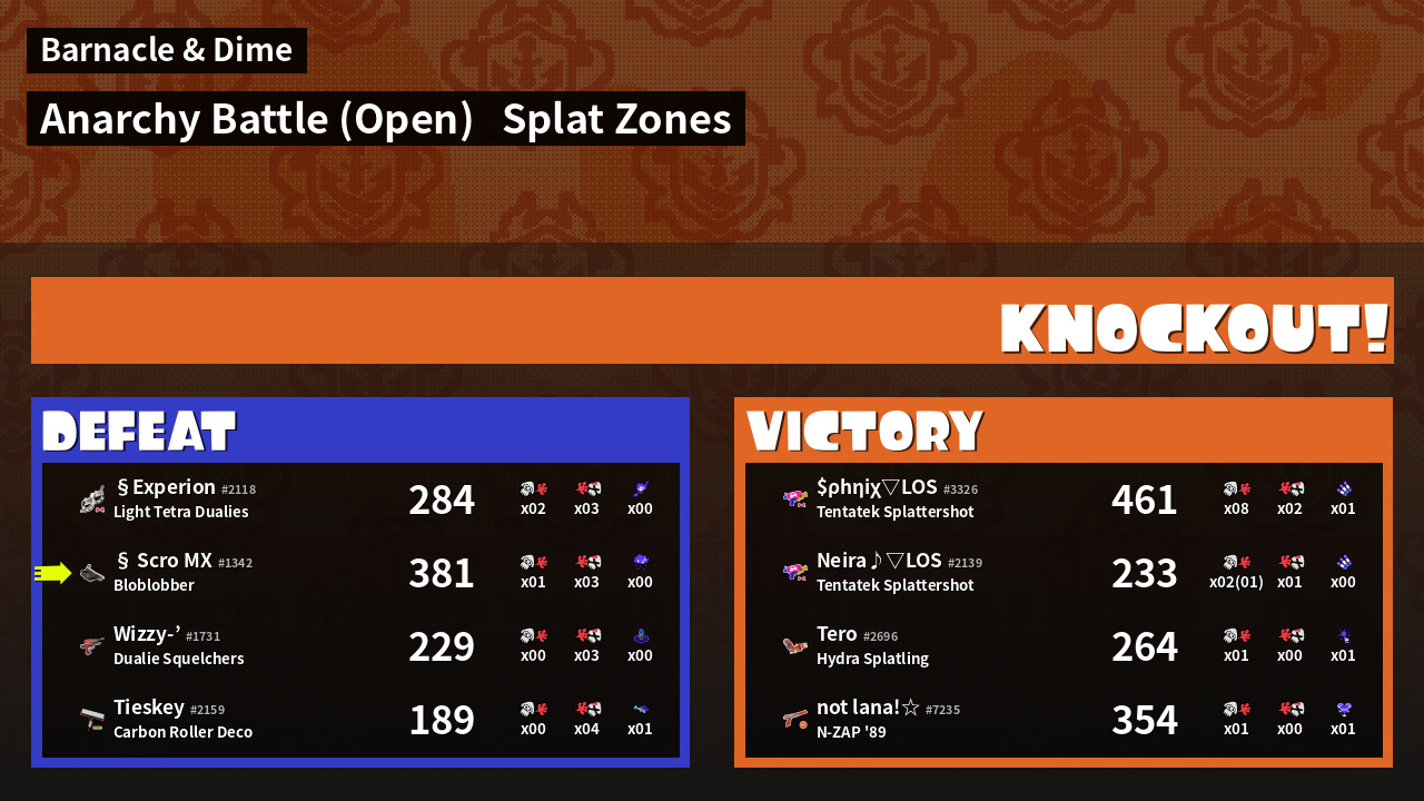 | Mode | Splat Zones - Anarchy Battle (Open) | ||