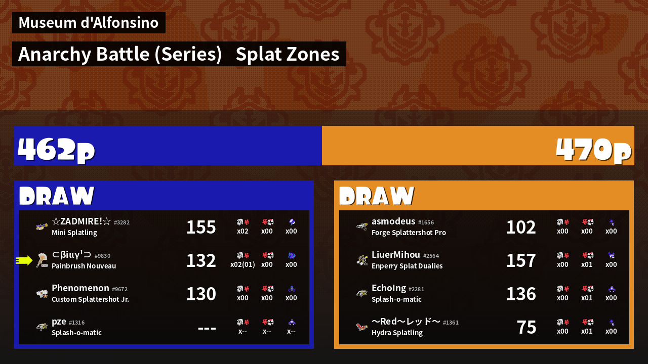 | Mode | Splat Zones - Anarchy Battle (Series) | ||