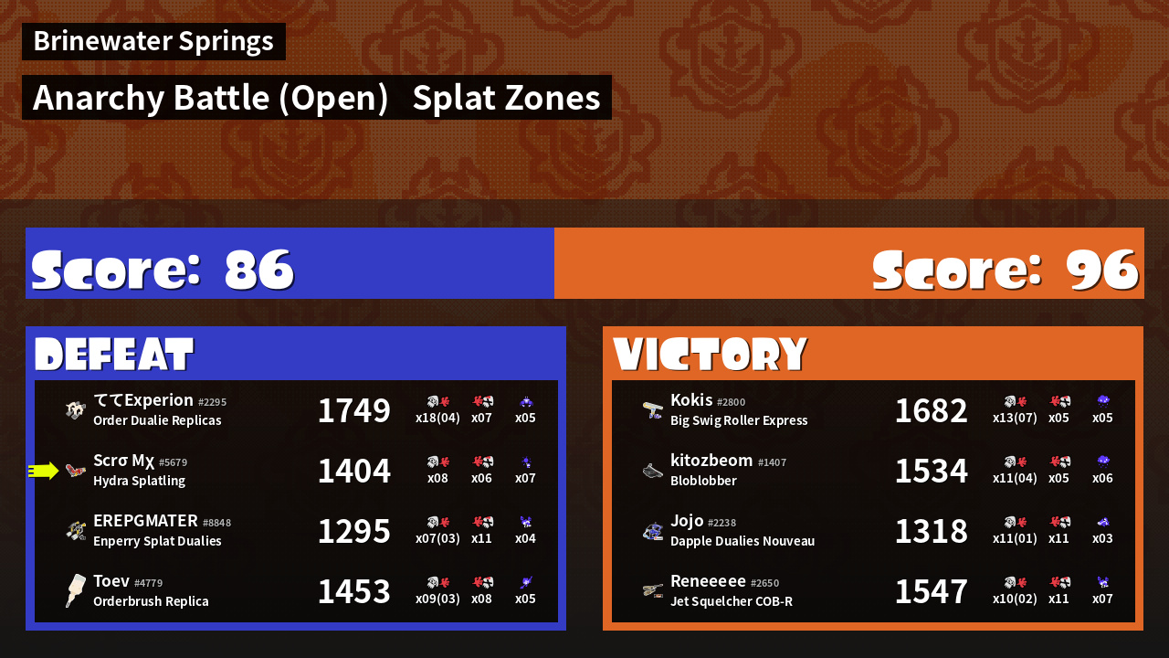 | Mode | Splat Zones - Anarchy Battle (Open) |